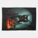 Vampire Cat and Wizard Pumpkin Halloween Surreal Tea Towel