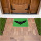 This awesome doormat features a creepy vampire bat with the face of a cat. The bat is flying with wings outstretched and has the evil green eyes of a creepy cat and some scary white fangs. This creepy chimera is the perfect creature for a haunting Halloween.