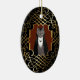 This portrait of a vampire kitty is framed in jet black with shiny gold scroll decoration. The tabby cat is dressed in the style of Count Dracula as portrayed in classic movies complete with black cloak, fangs and a widow’s peak. Around his neck is a chain from which a bat pendant hangs. Cat lovers will love this design for Halloween or any time a smile is needed. From my original digitally created image.