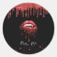 Vampire Red Glitter Drip Lips Halloween Black Classic Round Sticker