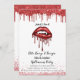 Editable Halloween vampire adult party invitation. Design features red lips dripping with blood and vampire fangs on a white background! Glamourous red glitter dripping, red glitter and sparkles frame the card. Personalise the text and change the font style and colour to suit. The glitter is not "actual real" glitter but a printed effect.