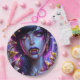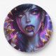 Pretty purple vampire with gold fangs and eyes Halloween party plates.
