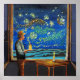 Van Gogh dreams of the starry night with the fireflies. Originally an oil painting on canvas
