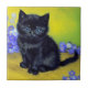Tile featuring a black cat in the style of Vincent van Gogh! This blue eyed darling sits adorably with purple flowers against a green wall and yellow table. A wonderful gift for cat lovers and Dutch art collectors!