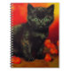 Notebook featuring a black kitten in the style of Vincent van Gogh! This fluffy kitty poses with red flowers. The purr-fect gift for cat lovers and Dutch art collectors!