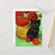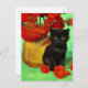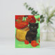 Van Gogh Black Kitten Red Flowers Holiday Postcard