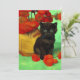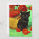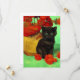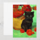 Card featuring a black kitten in the style of Van Gogh! A cute kitty sits beside a vase with red flowers. A green wall and floor give a spring ambience. A fantastic gift for cat lovers and Dutch art collectors!