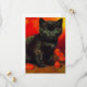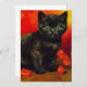 Card featuring a black kitten in the style of Vincent van Gogh! This fluffy kitty poses with red flowers. The purr-fect gift for cat lovers and Dutch art collectors!