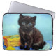 Laptop Sleeve featuring a black kitten in the style of Van Gogh! A fluffy kitten plays with a ball of yarn. Beside him sits a basket with even more yarn. A great gift for cat lovers and Dutch art collectors!