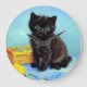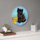 Clock featuring a black kitten in the style of Van Gogh! A fluffy kitten plays with a ball of yarn. Beside him sits a basket with even more yarn. A great gift for cat lovers and Dutch art collectors!