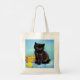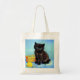 Tote Bag featuring a black kitten in the style of Van Gogh! A fluffy kitten plays with a ball of yarn. Beside him sits a basket with even more yarn. A great gift for cat lovers and Dutch art collectors!