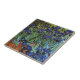 Vincent Van Gogh Irises tile. Oil painting on canvas from 1889. Van Gogh completed Irises during his stay in the asylum at Saint Remy de Provence a year before his death. The work represents the artist’s more famous flower paintings, and makes a great gift for fans of Irises, Van Gogh, post-impressionism, and floral art.