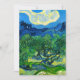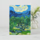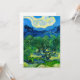 Card featuring Vincent van Gogh’s oil painting Olive Trees in a Mountainous Landscape (1889). Green olive trees decorate a mountainside underneath a starry night sky. A marvellous gift for lovers of Post-Impressionism and Dutch art collectors!