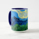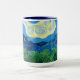 Coffee Mug featuring Vincent van Gogh’s oil painting Olive Trees in a Mountainous Landscape (1889). Green olive trees decorate a mountainside underneath a starry night sky. A marvellous gift for lovers of Post-Impressionism and Dutch art collectors!