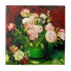 Tile featuring Vincent van Gogh’s oil painting Bowl with Peonies and Roses (1886). Beautiful pink and white peonies and roses sit in a green vase against a red background. A wonderful gift for fans of Post-Impressionism and Dutch art.