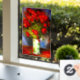 Window Cling featuring Vincent van Gogh’s oil painting Vase with Poppies (1886). Gorgeous red poppies are arranged in a white vase against a blue background. A great gift for fans of Post-Impressionism and Dutch art.