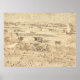 Poster of Vincent Van Gogh, Harvest the plain of La Crau, 1888. Old famous painting sketches with farmer fields and farmhouses in soft sand or cream tone colours and a post-impressionism style. CCO license, public domain art.