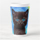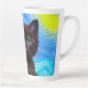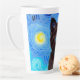Latte Mug featuring a black cat in Van Gogh’s painting Starry Night! This blue eyed kitten gazes adoringly from a background of blue swirls and a bright yellow moon. A fantastic gift for cat lovers and Dutch art collectors!