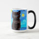 Magic Mug featuring a black cat in Van Gogh’s painting Starry Night! This blue eyed kitten gazes adoringly from a background of blue swirls and a bright yellow moon. A fantastic gift for cat lovers and Dutch art collectors!