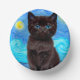 Paper Bowls featuring a black cat in Van Gogh’s painting Starry Night! This blue eyed kitten gazes adoringly from a background of blue swirls and a bright yellow moon. A fantastic gift for cat lovers and Dutch art collectors!
