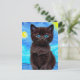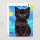 Postcard featuring a black cat in Van Gogh’s painting Starry Night! This blue eyed kitten gazes adoringly from a background of blue swirls and a bright yellow moon. A fantastic gift for cat lovers and Dutch art collectors!