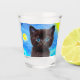 Shot Glass featuring a black cat in Van Gogh’s painting Starry Night! This blue eyed kitten gazes adoringly from a background of blue swirls and a bright yellow moon. A fantastic gift for cat lovers and Dutch art collectors!