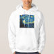 Van Gogh Starry Night hoodie. Van Gogh’s most famous painting, Starry Night depicts the view from the artist’s bedroom window at the asylum in Saint Remy de Provence. A beautiful night sky punctuated by yellow stars pulsing above the village church below, Starry Night is a great gift for fans of impressionism, Vincent van Gogh, cloudscapes, and French painting.