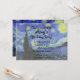Birthday invitation template with van gogh's starry night with stars, moon, village in beautiful blue and yellow colours