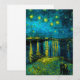 Card featuring Vincent van Gogh’s oil painting Starry Night Over the Rhône (1888). Shining yellow stars decorate the blue night sky as a couple strolls along a riverbank in Arles. A perfect gift for fans of Post-Impressionism and Dutch art.