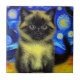 Van Gogh Starry Night Siamese Cat Ceramic Tile