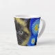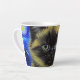 Latte Mug featuring a Siamese cat in Van Gogh’s painting Starry Night! This fluffy beauty poses in front of a blue night sky with shining moon and stars. A cosy gift for cat lovers and Dutch art collectors!