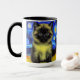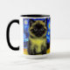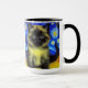 Coffee Mug featuring a Siamese cat in Van Gogh’s painting Starry Night! This fluffy beauty poses in front of a blue night sky with shining moon and stars. A cosy gift for cat lovers and Dutch art collectors!