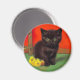 Magnet featuring a black cat in Van Gogh style! This beautiful kitty adorably sits next to sunflowers upon a green floor against a red wall. A cute gift for cat lovers and Dutch art collectors!
