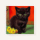 Notebook featuring a black cat in Van Gogh style! This beautiful kitty adorably sits next to sunflowers upon a green floor against a red wall. A cute gift for cat lovers and Dutch art collectors!