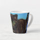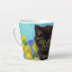 Latte Mug featuring a Van Gogh style cat with sunflowers! A pretty black kitten cutely poses with yellow flowers. A fabulous gift for cat lovers and Dutch art collectors!