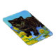 Magnet featuring a Van Gogh style cat with sunflowers! A pretty black kitten cutely poses with yellow flowers. A fabulous gift for cat lovers and Dutch art collectors!