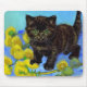 Mouse Pad featuring a Van Gogh style cat with sunflowers! A pretty black kitten cutely poses with yellow flowers. A fabulous gift for cat lovers and Dutch art collectors!