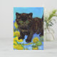 Card featuring a Van Gogh style cat with sunflowers! A pretty black kitten cutely poses with yellow flowers. A fabulous gift for cat lovers and Dutch art collectors!
