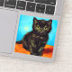 Sticker featuring a Van Gogh style pouting kitten. A fluffy black kitty looks at the viewer with an extended lower lip—she just wants some attention! A gorgeous gift for cat lovers and Dutch art collectors!