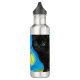 Water Bottle featuring a Van Gogh cat in the style of Starry Night! A fluffy black kitten perches on a table against a blue night sky and yellow moon. A purr-fect gift for cat lovers and Dutch art collectors!