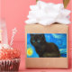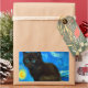 Stickers featuring a Van Gogh cat in the style of Starry Night! A fluffy black kitten perches on a table against a blue night sky and yellow moon. A purr-fect gift for cat lovers and Dutch art collectors!