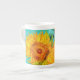 Bone China Mug featuring Vincent van Gogh’s still life painting depicting a bouquet of sunflowers in a green vase. Part of his initial version in the Arles Sunflowers series. A great gift for fans of flower paintings, Post-Impressionism, and Dutch art.