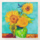 Glass Coaster featuring Vincent van Gogh’s still life painting depicting a bouquet of sunflowers in a green vase. Part of his initial version in the Arles Sunflowers series. A great gift for fans of flower paintings, Post-Impressionism, and Dutch art.