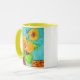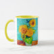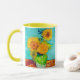 Mug featuring Vincent van Gogh’s still life painting depicting a bouquet of sunflowers in a green vase. Part of his initial version in the Arles Sunflowers series. A great gift for fans of Post-Impressionism, flower paintings, and Dutch art.