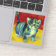 Sticker featuring a tabby cat in the style of Van Gogh! This sweet kitty adorably poses on a wooden floor against red walls and a window. An awesome gift for cat lovers and Dutch art collectors!