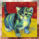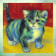 Window Cling featuring a tabby cat in the style of Van Gogh! This sweet kitty adorably poses on a wooden floor against red walls and a window. An awesome gift for cat lovers and Dutch art collectors!