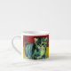 Espresso Cup featuring a tabby cat in the style of Van Gogh! This sweet kitty adorably poses on a wooden floor against red walls and a window. An awesome gift for cat lovers and Dutch art collectors!