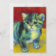 Card featuring a tabby cat in the style of Van Gogh! This sweet kitty adorably poses on a wooden floor against red walls and a window. An awesome gift for cat lovers and Dutch art collectors!