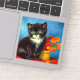 Sticker featuring a beautiful Van Gogh tuxedo cat! This little kitty poses next to a basket of orange flowers upon a red table. A great gift for cat lovers and Dutch art collectors!