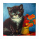 Tile featuring a beautiful Van Gogh tuxedo cat! This little kitty poses next to a basket of orange flowers upon a red table. A great gift for cat lovers and Dutch art collectors!